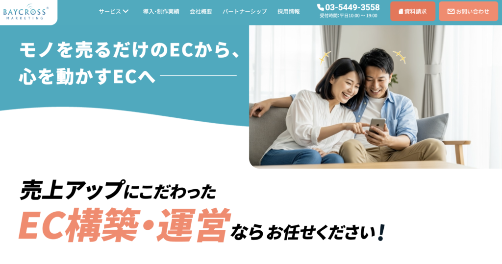 ベイクロスマーケティング株式会社は、Webマーケティング全般に強みを持ちながらAmazonをはじめとするECモールの運営代行を提供する会社です。デジタル広告・SEO・SNS運用など外部集客との組み合わせを得意とし、EC単体に留まらない総合的な売上拡大支援が可能です。