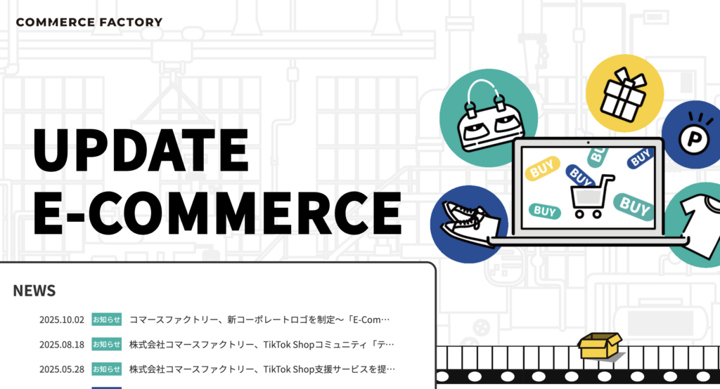コマースファクトリー株式会社は、Amazon・楽天・自社ECなど複数チャネルのEC運営を支援する会社です。EC事業のスタートアップ支援から既存店舗の売上改善まで幅広く対応し、デジタルマーケティング・SNS・インフルエンサーとの連動施策など集客チャネルを多様化した支援を行います。