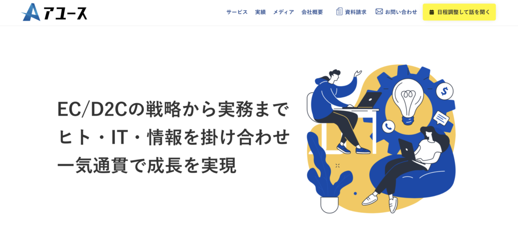 アユース株式会社は、Amazon・楽天などのEC支援を専門とし、データ分析を起点とした課題特定と高速PDCAが強みの会社です。商品ページのCVR改善と広告運用の最適化に特に注力しており、中小規模の事業者から大手ブランドまで幅広く対応しています。