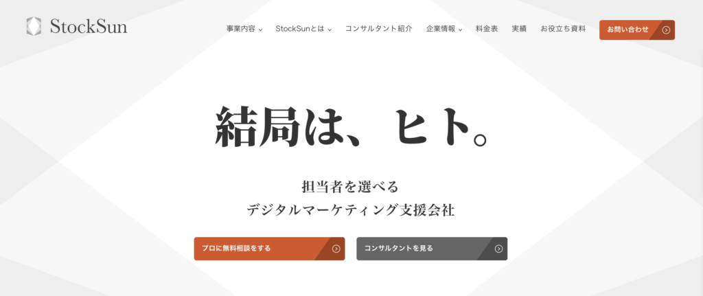 StockSun株式会社は、フリーランスの専門家チームを活用したEC支援・デジタルマーケティング支援を提供する会社です。Amazon運営代行・広告運用代行に加え、SNSマーケティング・コンテンツ制作・自社ECグロース支援など幅広く対応し、各分野の専門家が連携した横断的な支援が特徴です。