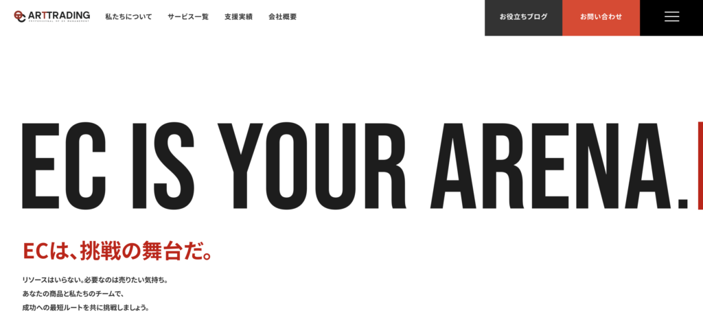 アートトレーディング株式会社は、EC制作から運営代行、物流まで一貫して対応できる老舗のEC支援会社です。自社倉庫(所沢)を保有し、受発注から出荷までのフルフィルメントサービスも提供しているため、バックエンド業務を含めて丸ごと委託したい企業に適しています。月額330,000円(税込)からの運営代行プランがあり、クライアント専属のチームがアサインされます。